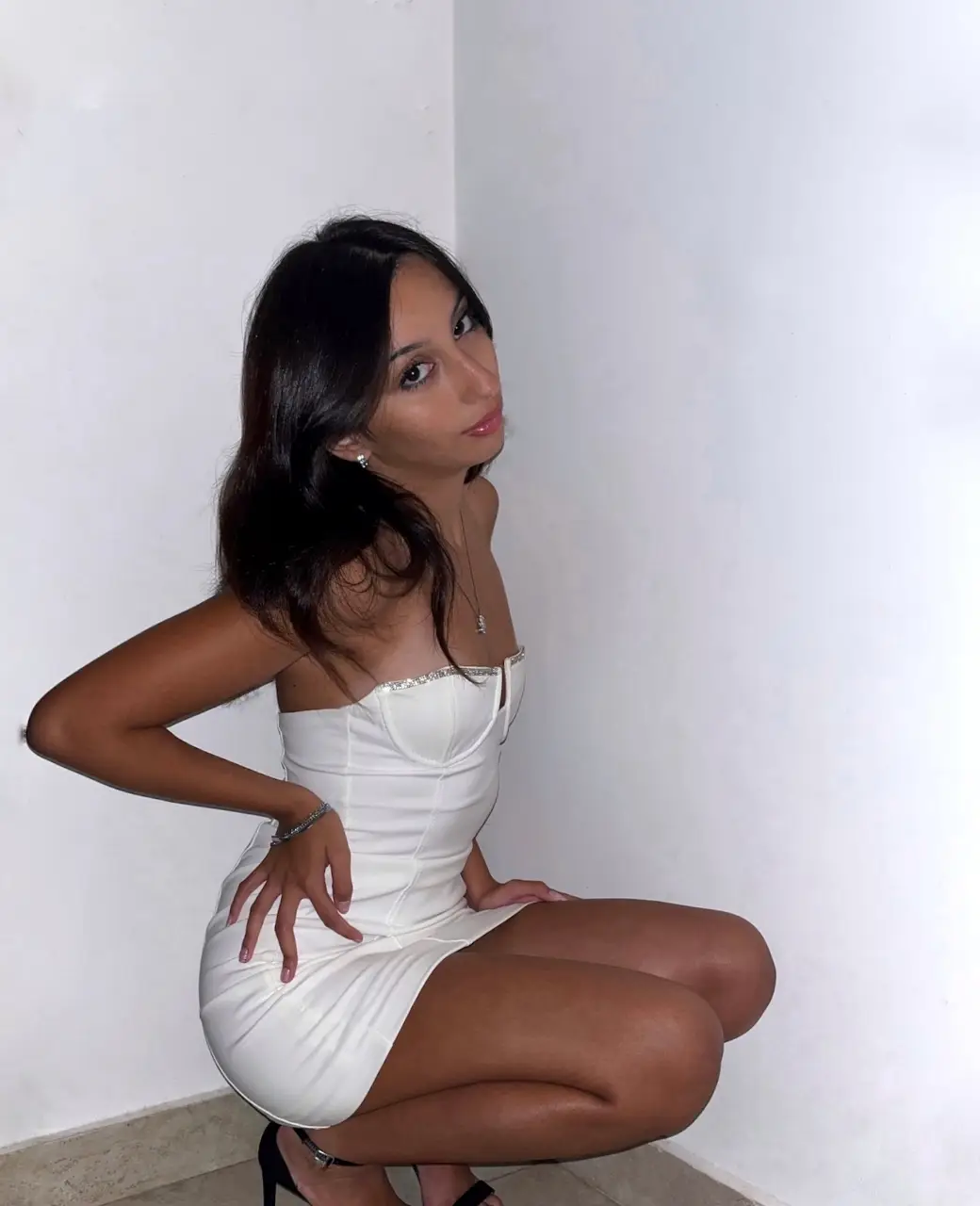 Vestido mini blanco strapless con detalles brillantes en el escote. cierre lateral. Zara