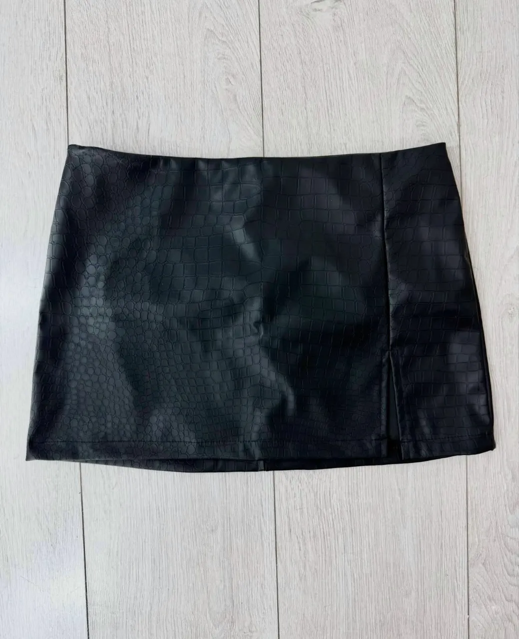 Mini falda de engomado con textura croco Detalle con cierre en la parte trasera