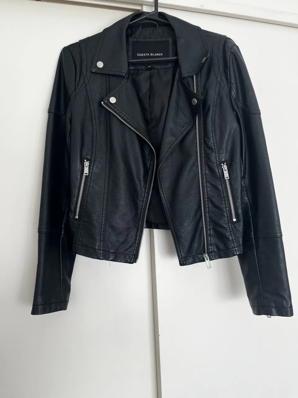 Campera de ecocuero negra, estilo biker, con detalles de cierres. Poco uso, como nueva, sin detalles. Talle 40 (el más chico).