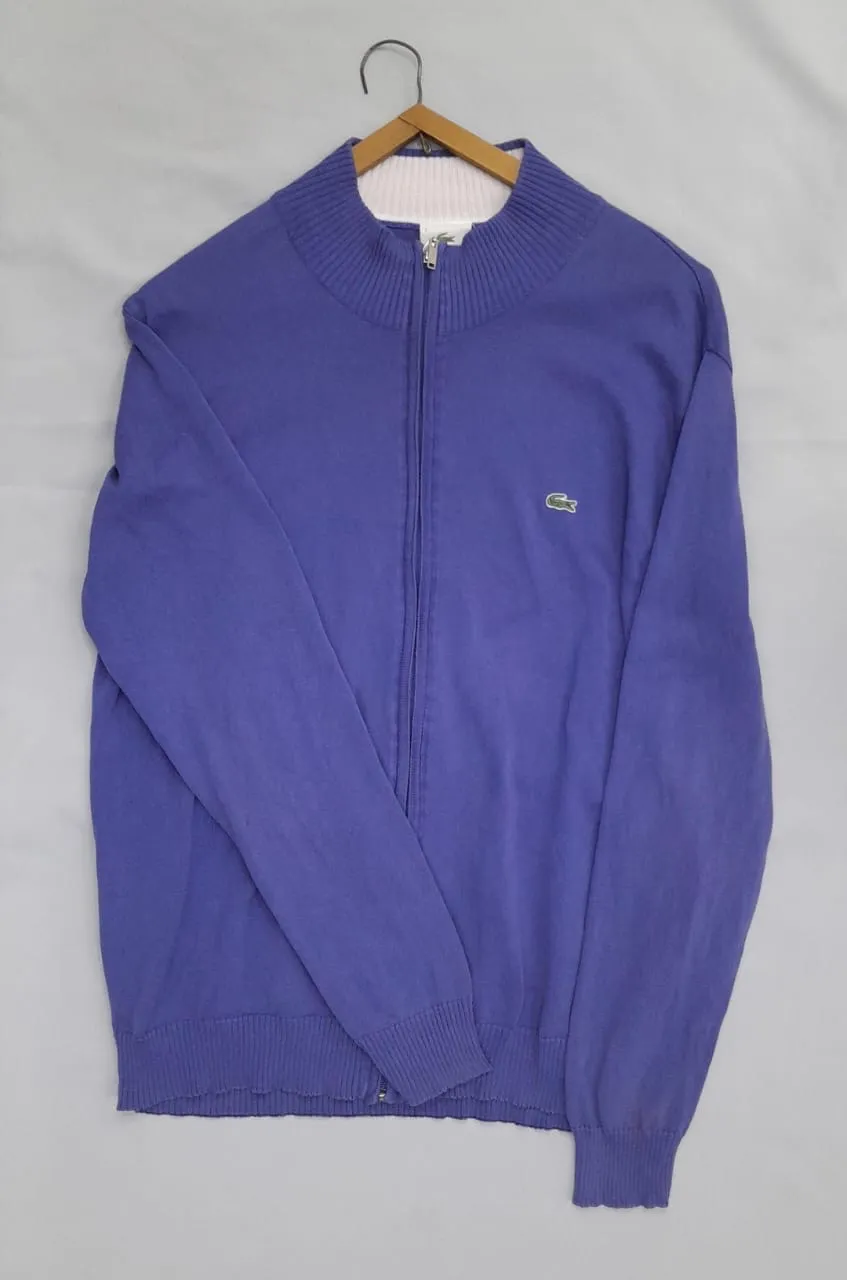 Buzo de algodón color azul con cierre completo y cuello alto. Presenta un pequeño logo bordado en el frente.