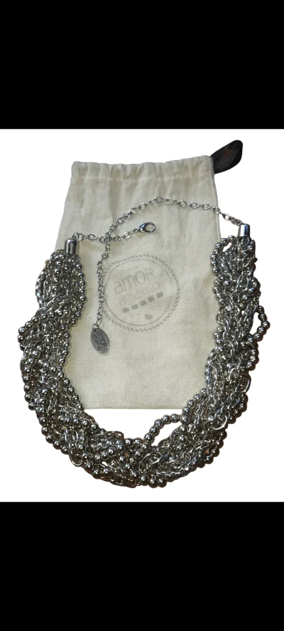 Collar de cadenas plateadas con detalles de bolitas. Ideal para darle un toque chic a cualquier outfit.