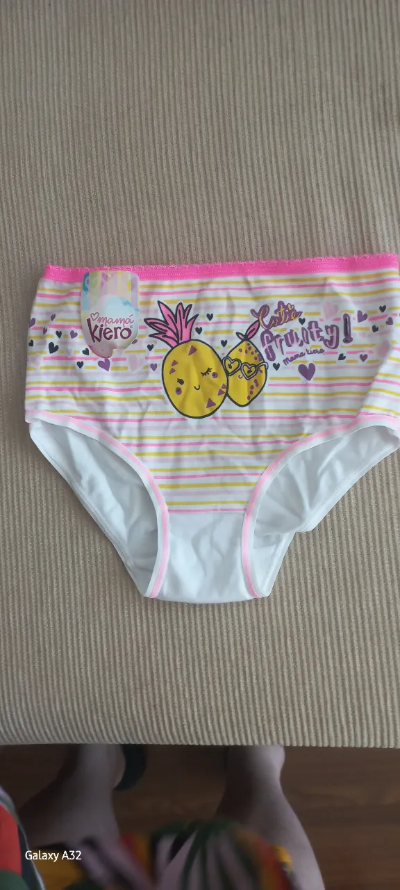 Pack x 2 Bombachitas de nena con estampa de frutas tropicales y rayas. Elástico en cintura y piernas.