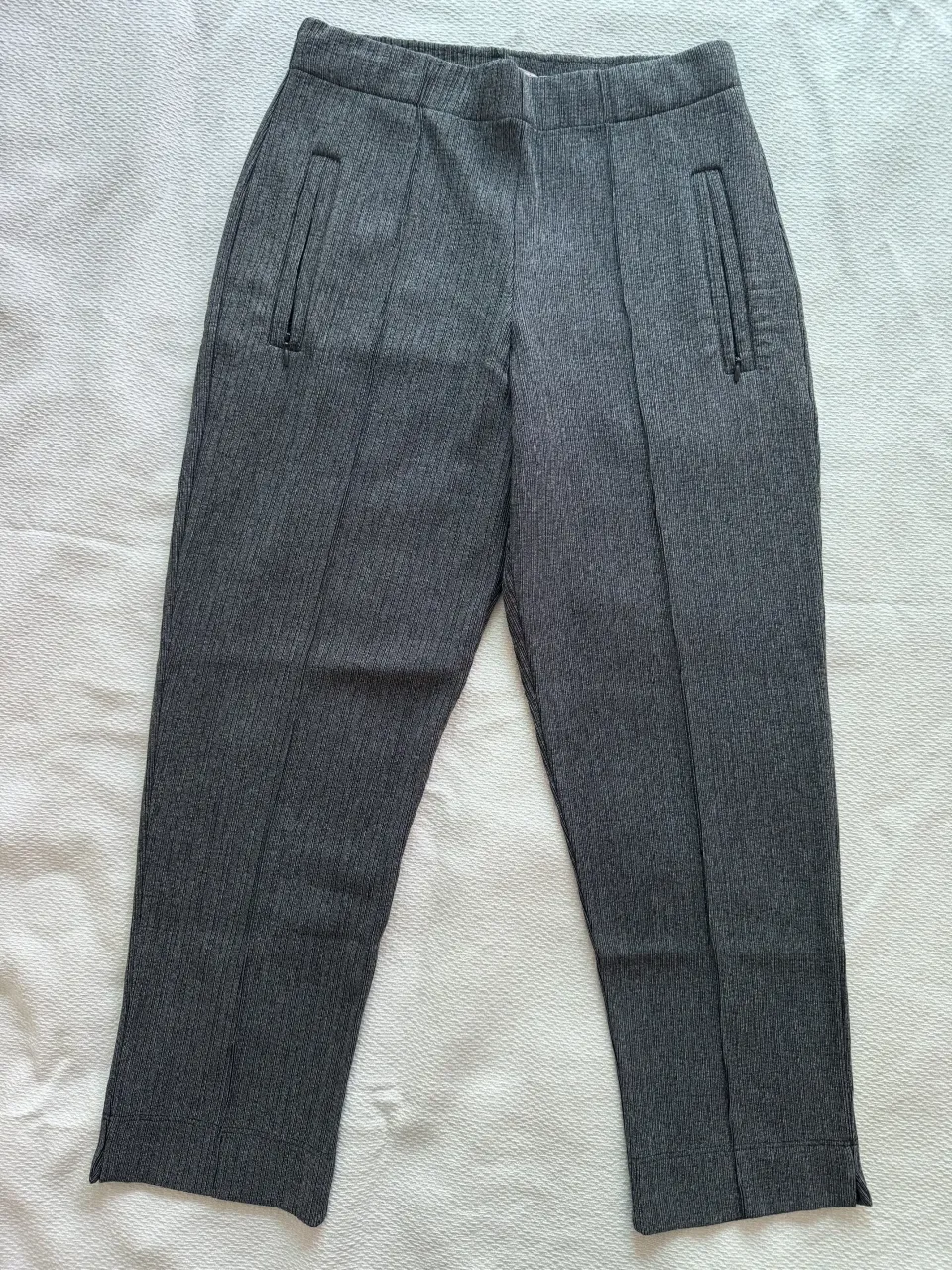 Pantalón de vestir gris oscuro, con pinzas delanteras y bolsillos. Corte recto y moderno, ideal para un look elegante y sofisticado.