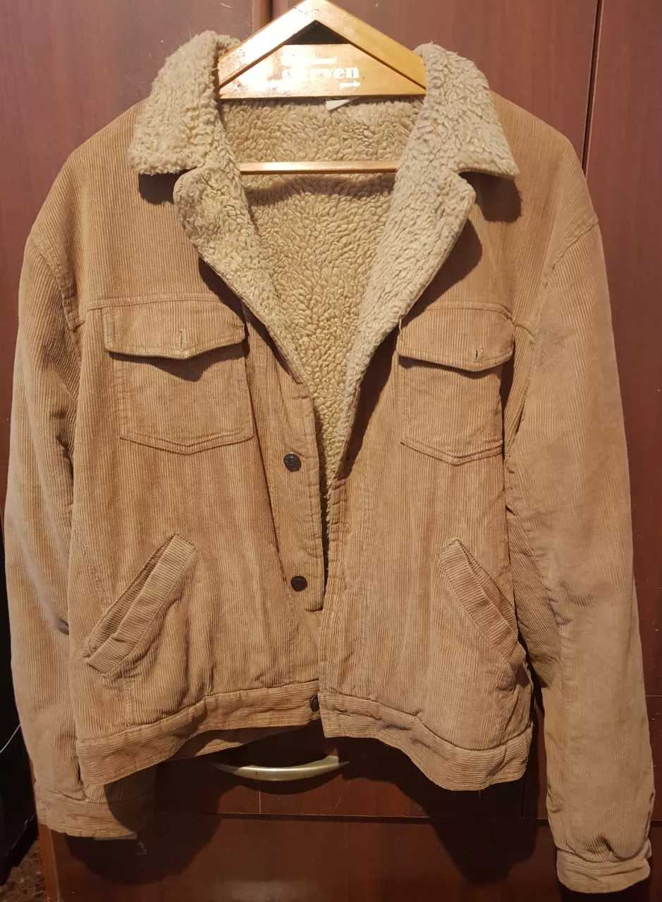 Campera de corderoy con interior de corderito. Tiene bolsillos frontales y un bolsillo interno. Poco uso