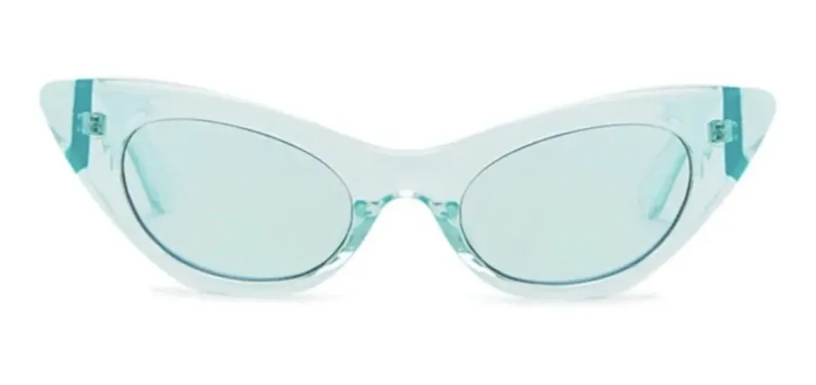 Lentes de sol estilo cat eye, súper chic y modernos. El color celeste translúcido le da un toque original y fresco, perfecto para destacar tu look.