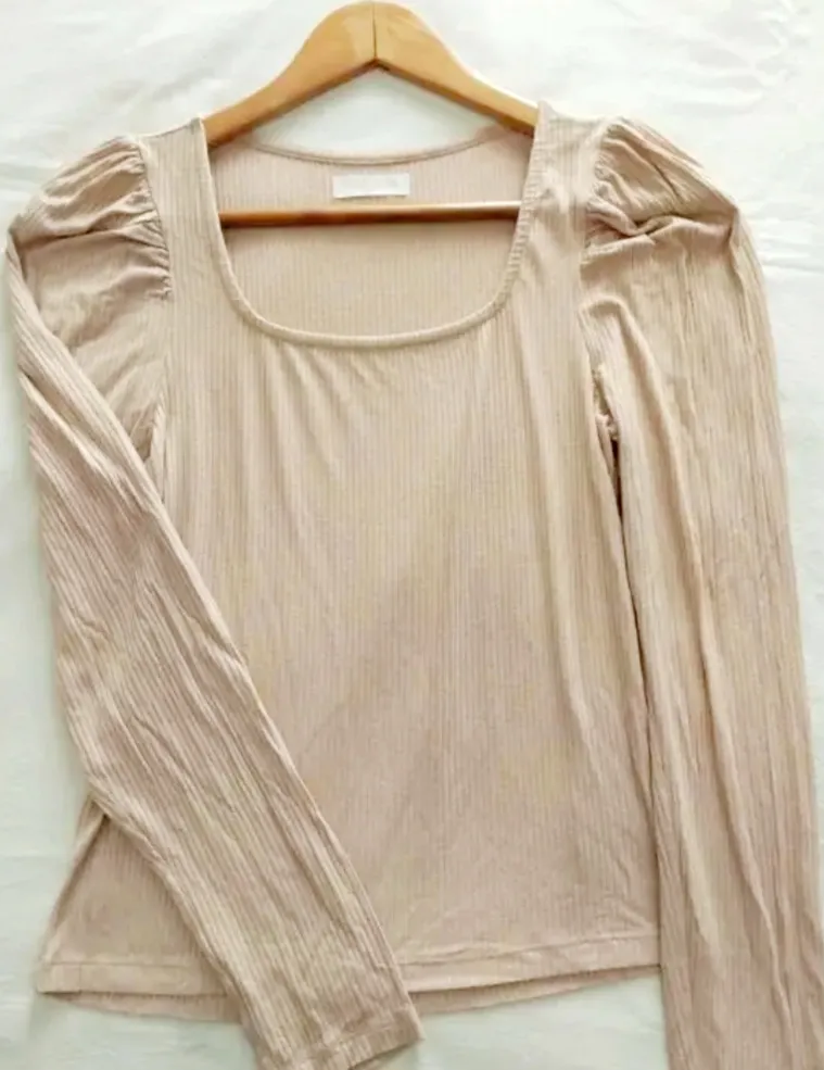 Remera manga larga de morley con mangas abullonadas y escote cuadrado. Súper canchera y cómoda, ideal para el día a día.