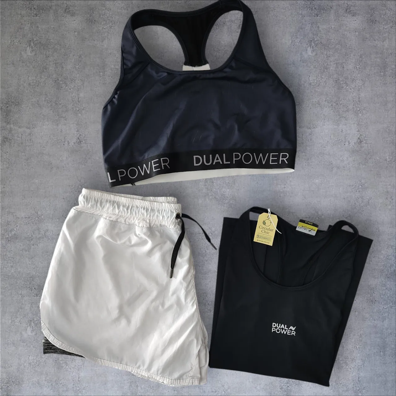 Conjunto deportivo de top , musculosa y shorts Dual power, ideal para entrenamientos. las 3 prendas talle XL.
