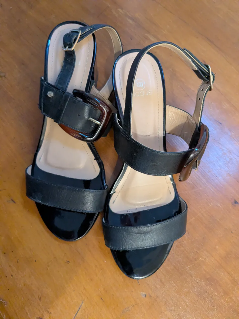 Sandalias negras con taco cuadrado, 5 CM, marca Blaquier. Clasicas ! Tienen detalle de hebilla grande en la tira del tobillo. Muy poco uso. No necesitan nuevas tapas o mediasuela.