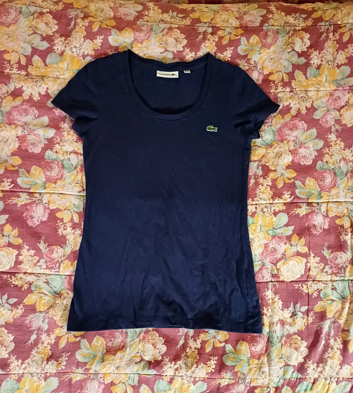 Remera azul marino de manga corta con cuello redondo y logo de cocodrilo bordado en el frente. Comprada en Mar del Plata! Talle etiquetado 36/S medidad: sisa a sisa: 36 cm largo: 60 cm Se entrega planchada!!