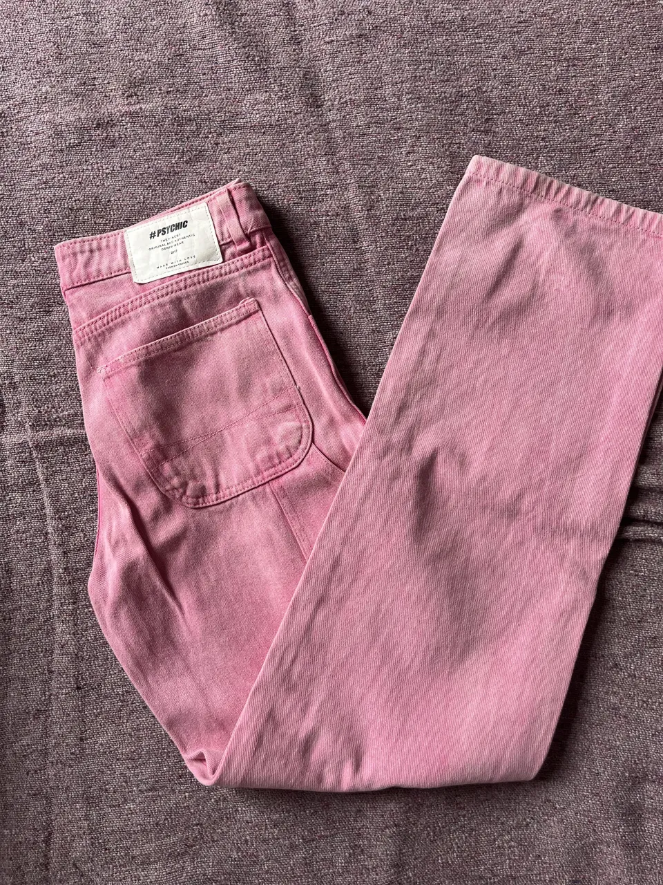 Pantalón de jean color rosa con cierre y botón tipo cargo recto y holgado.