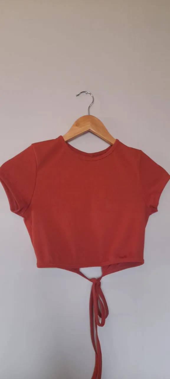 Top crop de manga corta con espalda descubierta y lazo. Ideal para un look canchero y fresco.