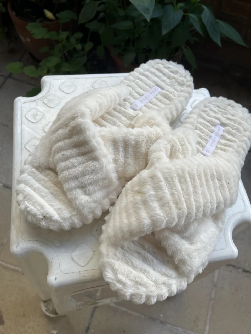 Pantuflas súper suaves y cómodas, ideales para estar en casa. Color blanco roto, con un diseño mullido y abrigado. Perfectas para relajarse después de un largo día.