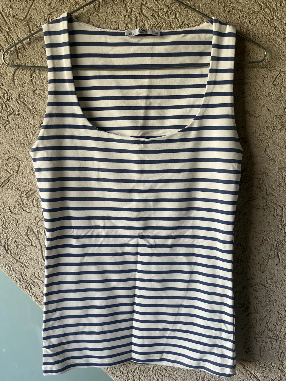 Remera ZARA sin mangas a rayas blancas y azul marino. Un básico infalible para cualquier ocasión.