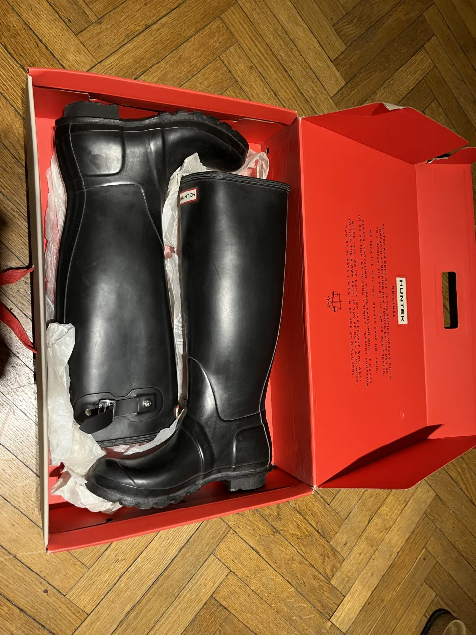 Botas de lluvia marca Hunter, color negro, talle 39. Ideales para días de lluvia o para actividades al aire libre. Un clásico que no puede faltar en tu guardarropa. Las use dos veces.