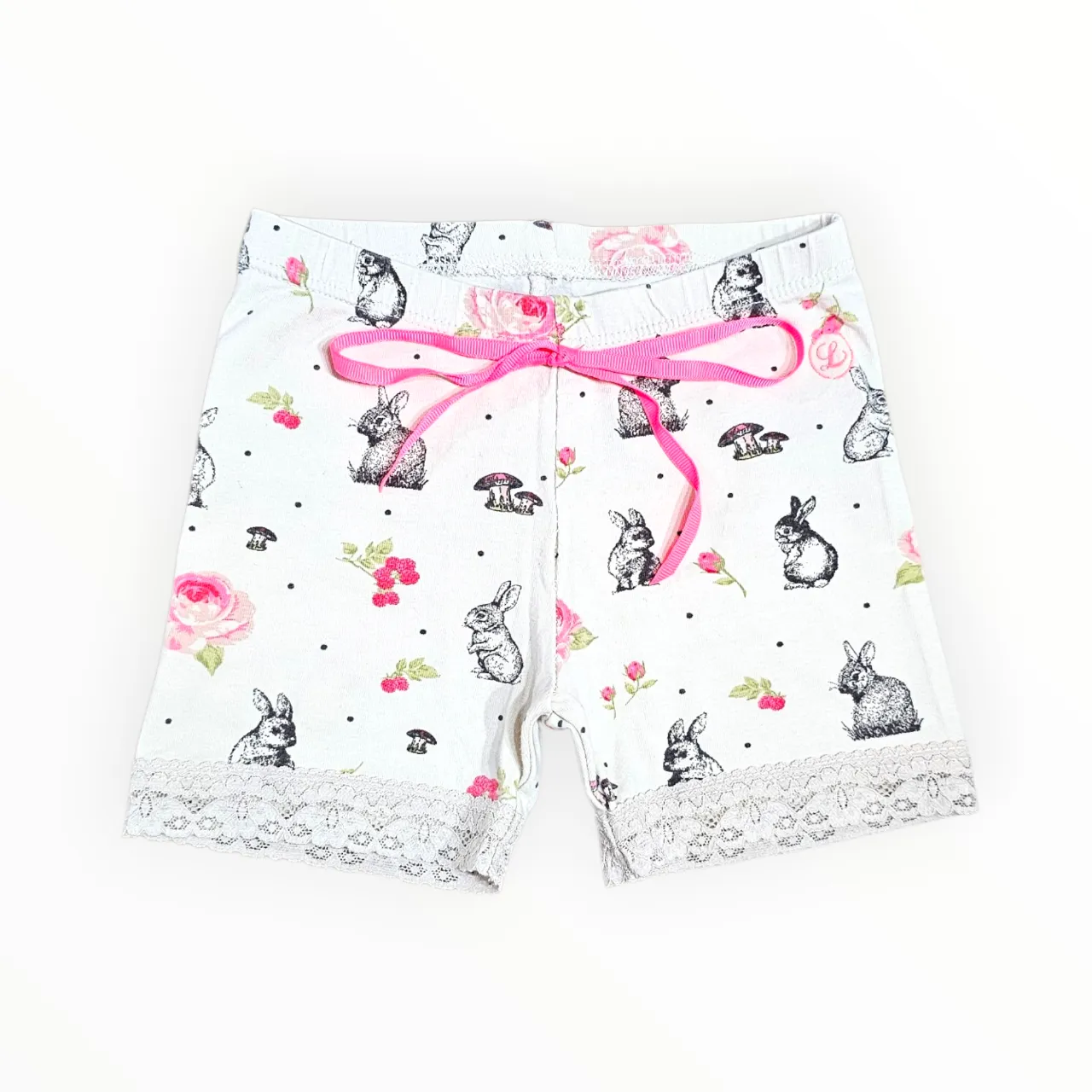 Hermosa biker / calza corta para niña marca little akiabara. color natural con estampa de conejitos, flores y lunares, muy delicado y original. ✔ algodón con elastano, suave y cómodo ✔ cintura elastizada con cinta rosa de bebé. ✔ terminación con puntilla en el ruedo ✔ estampa delicada de conejos y flores ✔ excelente estado prenda de muy buena calidad, cómoda y fresca, ideal para primavera y verano.