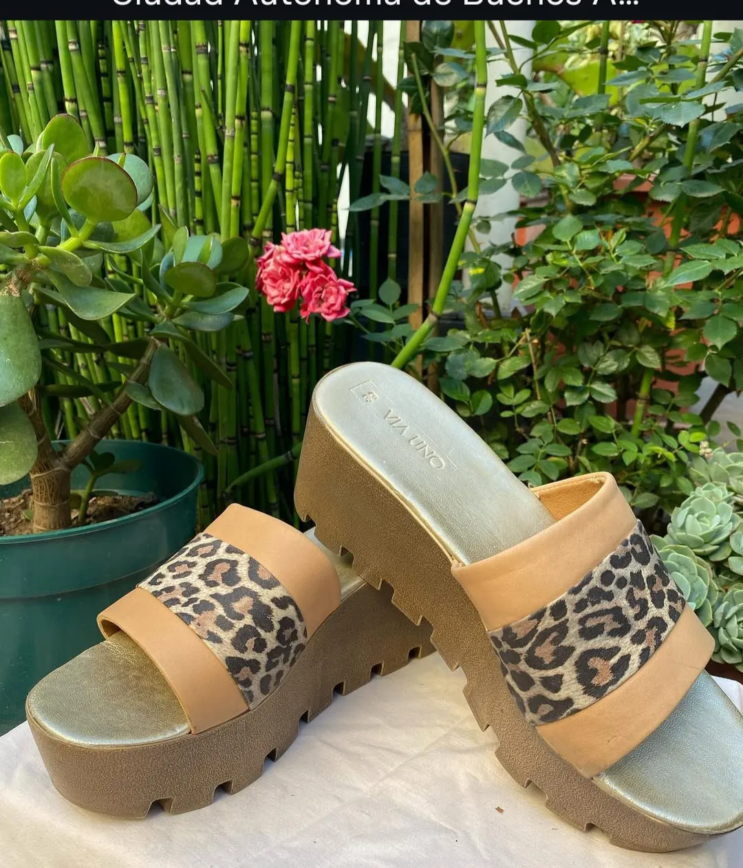 Sandalias de plataforma con estampa animal print y tiras de cuero. Ideales para un look canchero y cómodo. impecables.