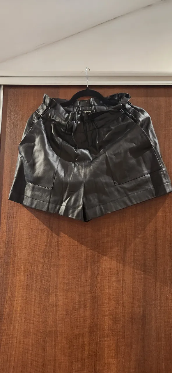 Shorts de cuero negros con detalles de frunces en la cintura y bolsillos. Un básico súper canchero para elevar cualquier look.