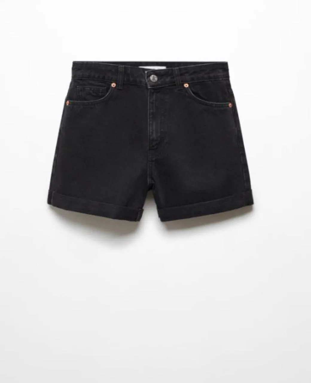Shorts de jean negros tiro alto con dobladillo en la botamanga. Un básico súper canchero para armar looks descomplicados.