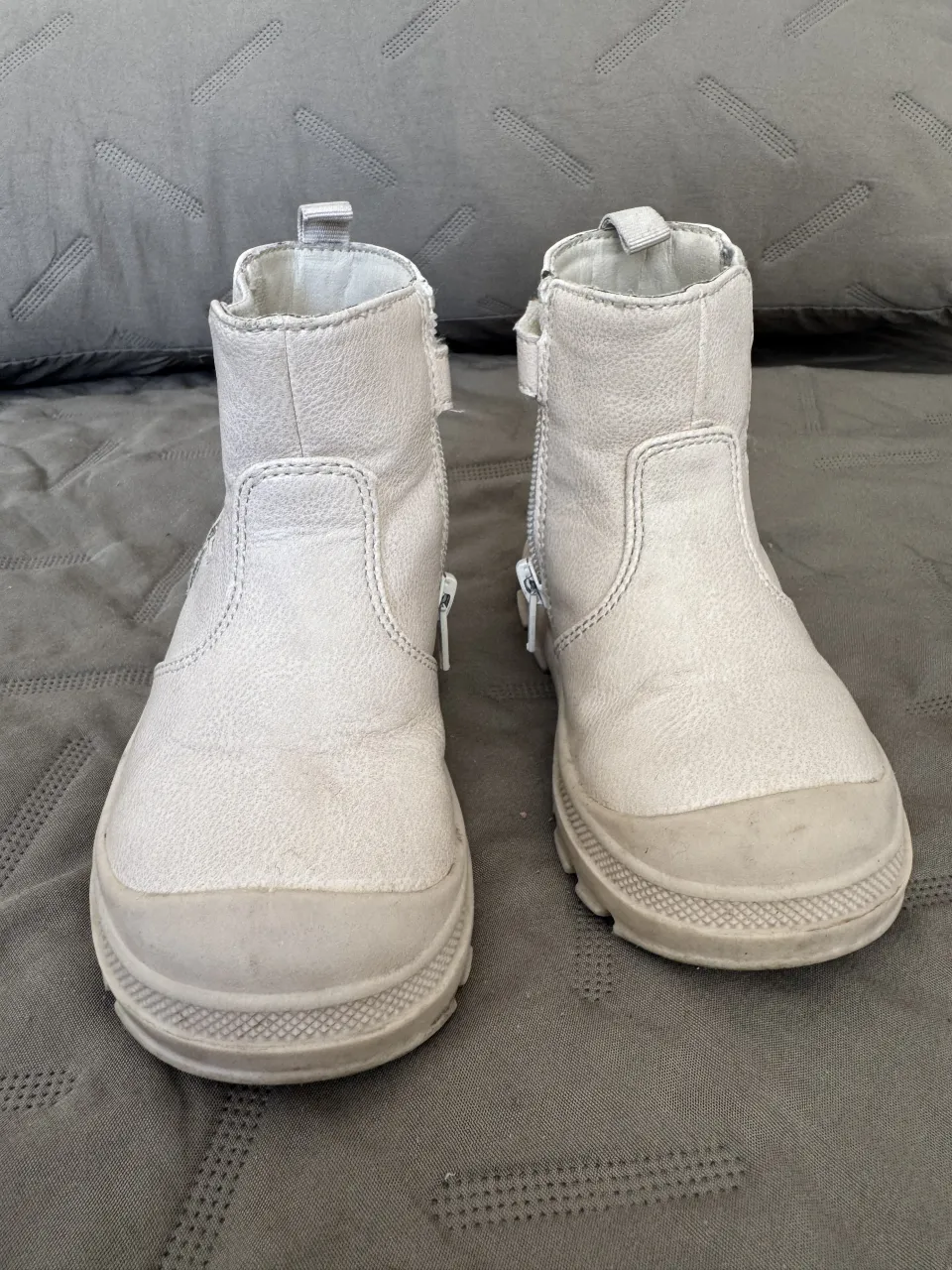 Botitas de cuero color crudo. Tienen cierre lateral y elástico en el otro lateral diseño comfy