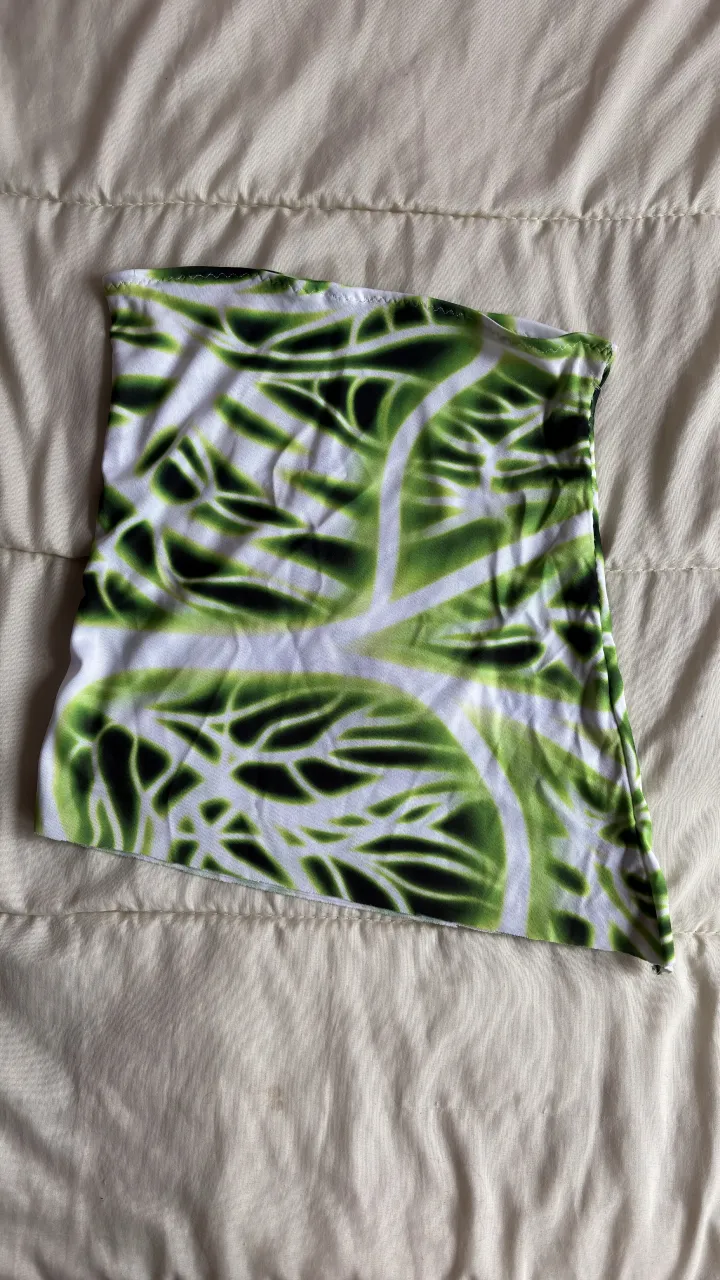 Top estampado con diseño abstracto en tonos verdes y blancos.