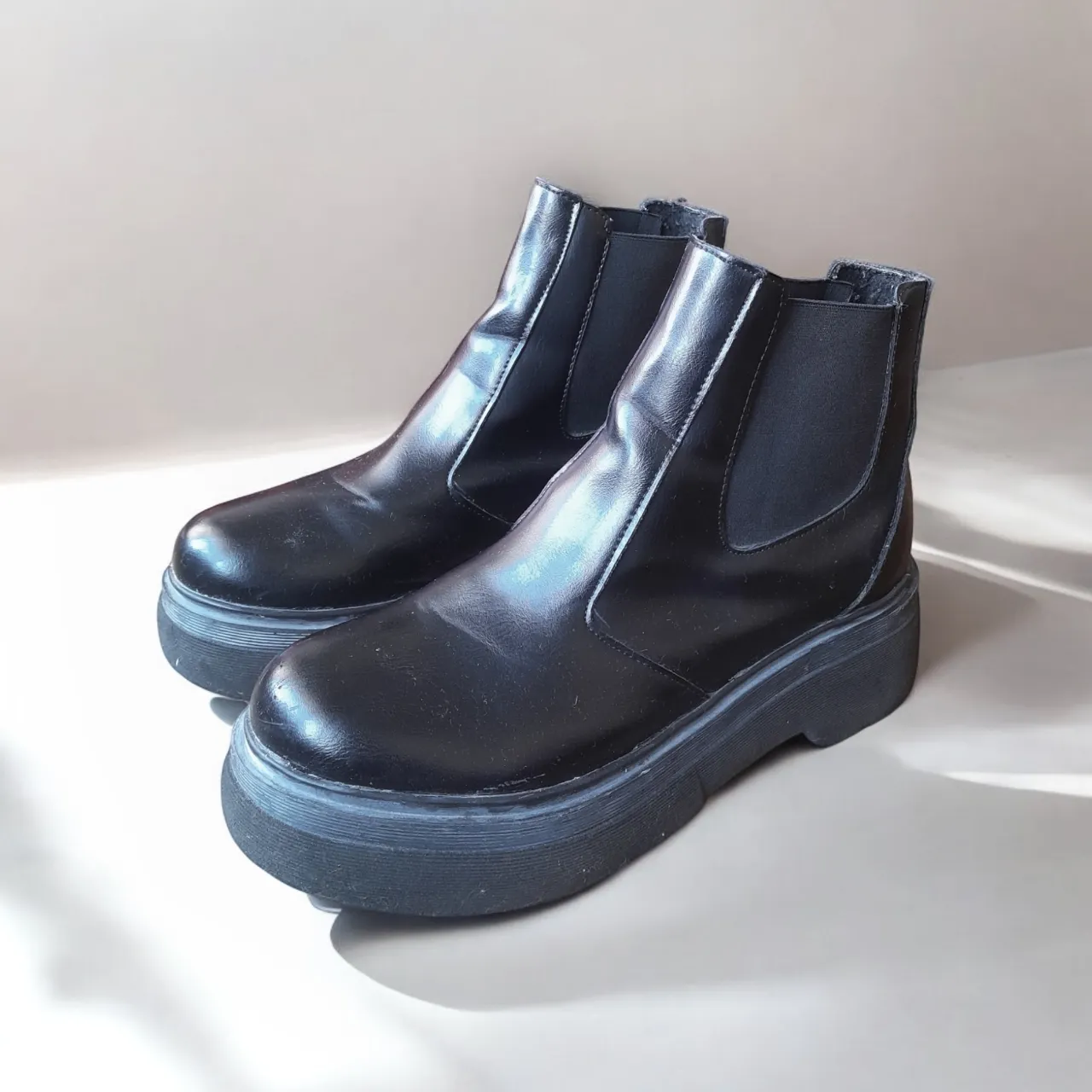 Botitas negras con plataforma, estilo chelsea. Ideales para darle un toque canchero a cualquier look. Son súper cómodas y versátiles. Tienen un detalle que se puede ver en la última foto