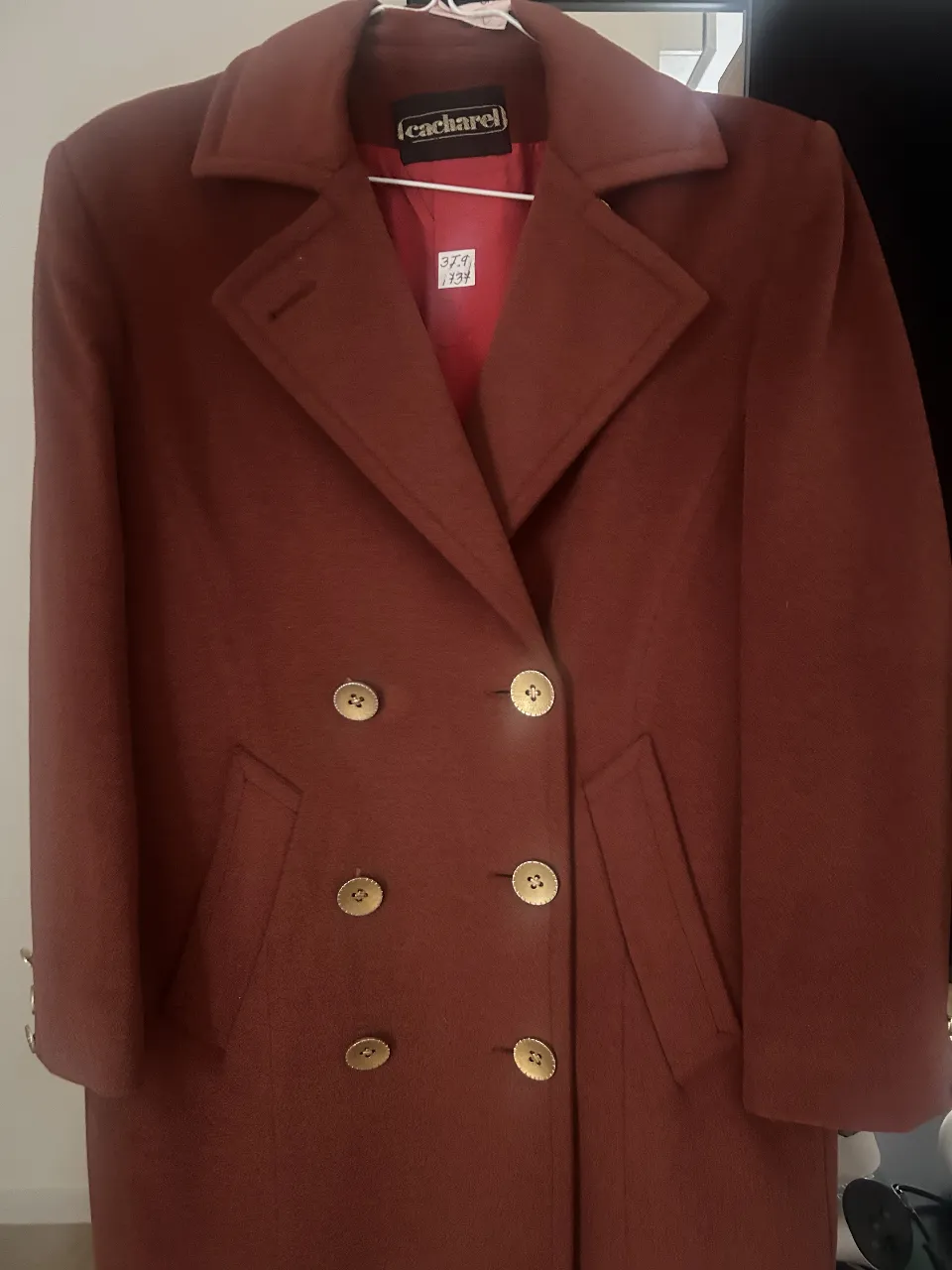 Abrigo clásico de paño color ladrillo, con doble abotonadura y cuello solapa. Forrado. Un diseño atemporal y elegante, perfecto para cualquier ocasión.