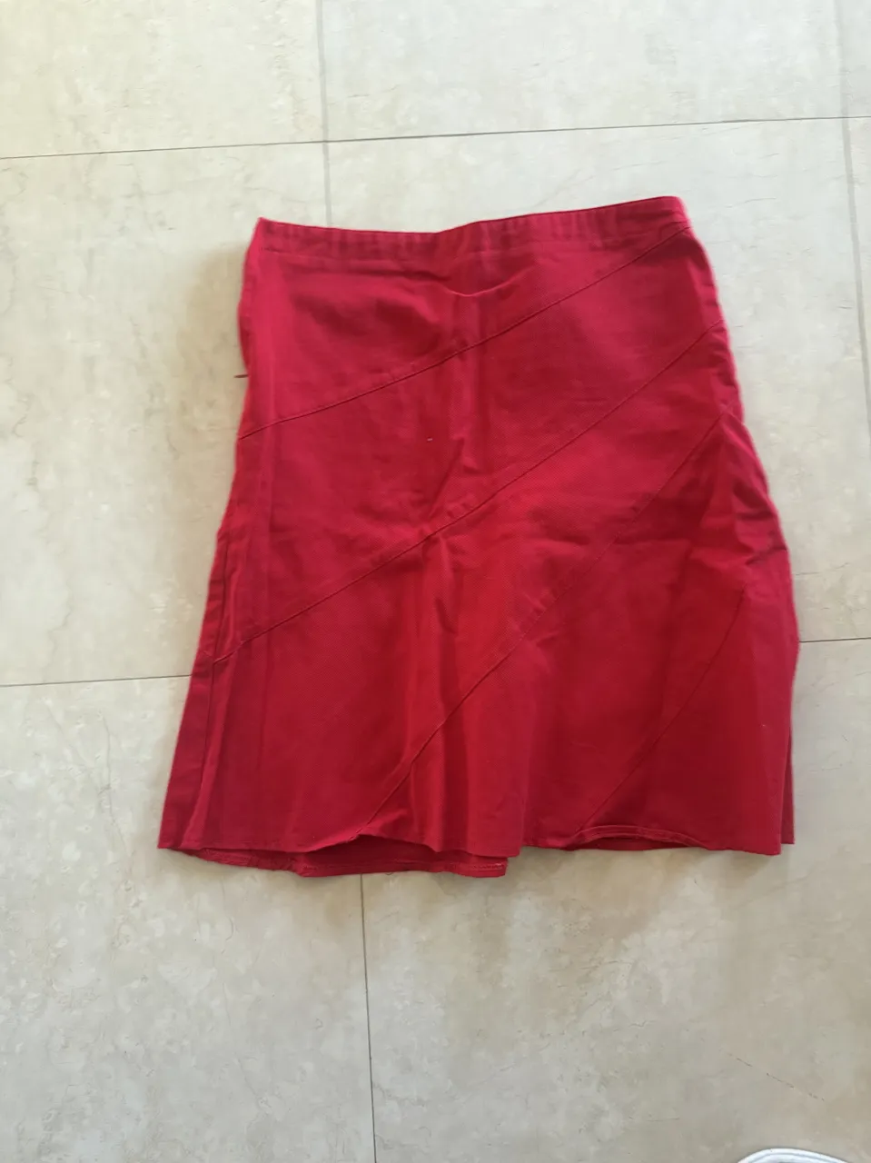 Pollera roja con costuras diagonales en el frente.