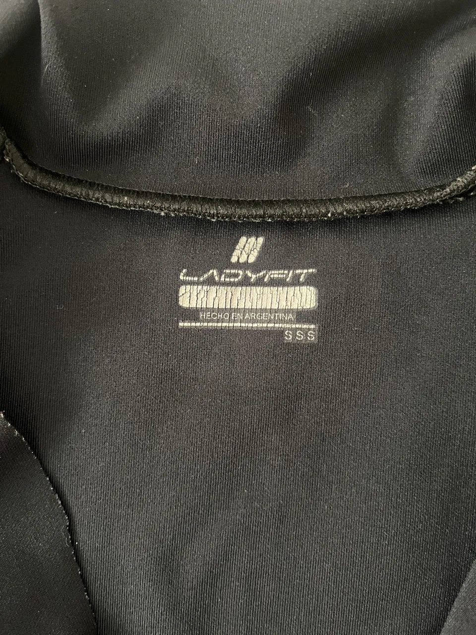 Campera deportiva negra con cierre completo y cuello alto. Ideal para entrenamientos o actividades al aire libre. Marca Lady Fit.