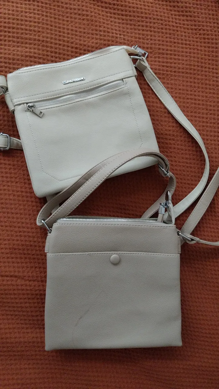 Set de dos carteras cruzadas color crudo. La cartera superior tiene un bolsillo exterior con cierre y la inferior tiene un bolsillo exterior con cierre y un botón a presión. Ambas son ideales para llevar lo esencial y mantener todo organizado. Perfectas para el día a día o para salidas casuales.