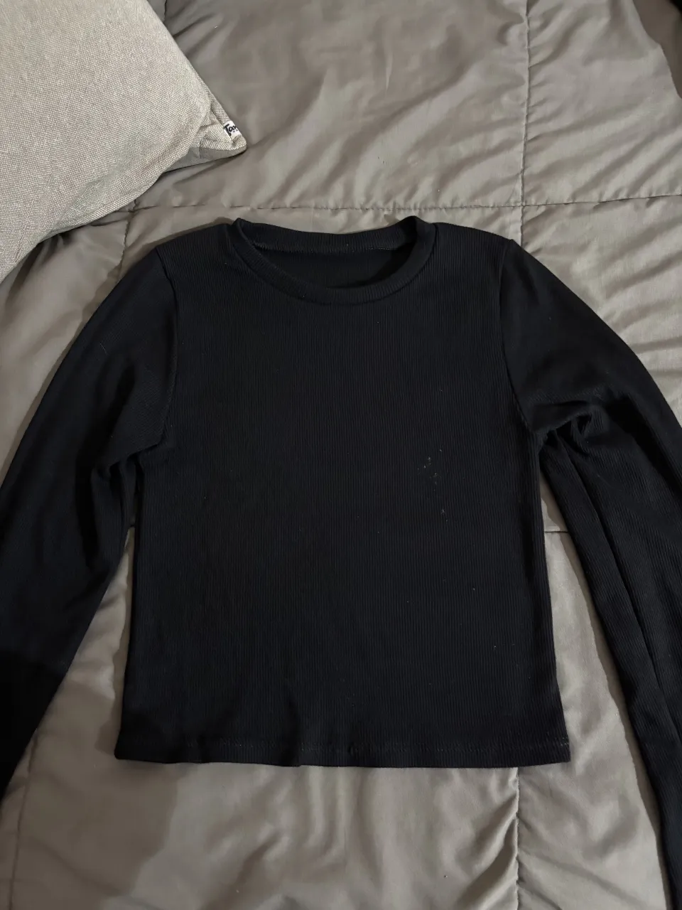 Remera negra de manga larga, con cuello redondo. Un básico versátil para cualquier ocasión.