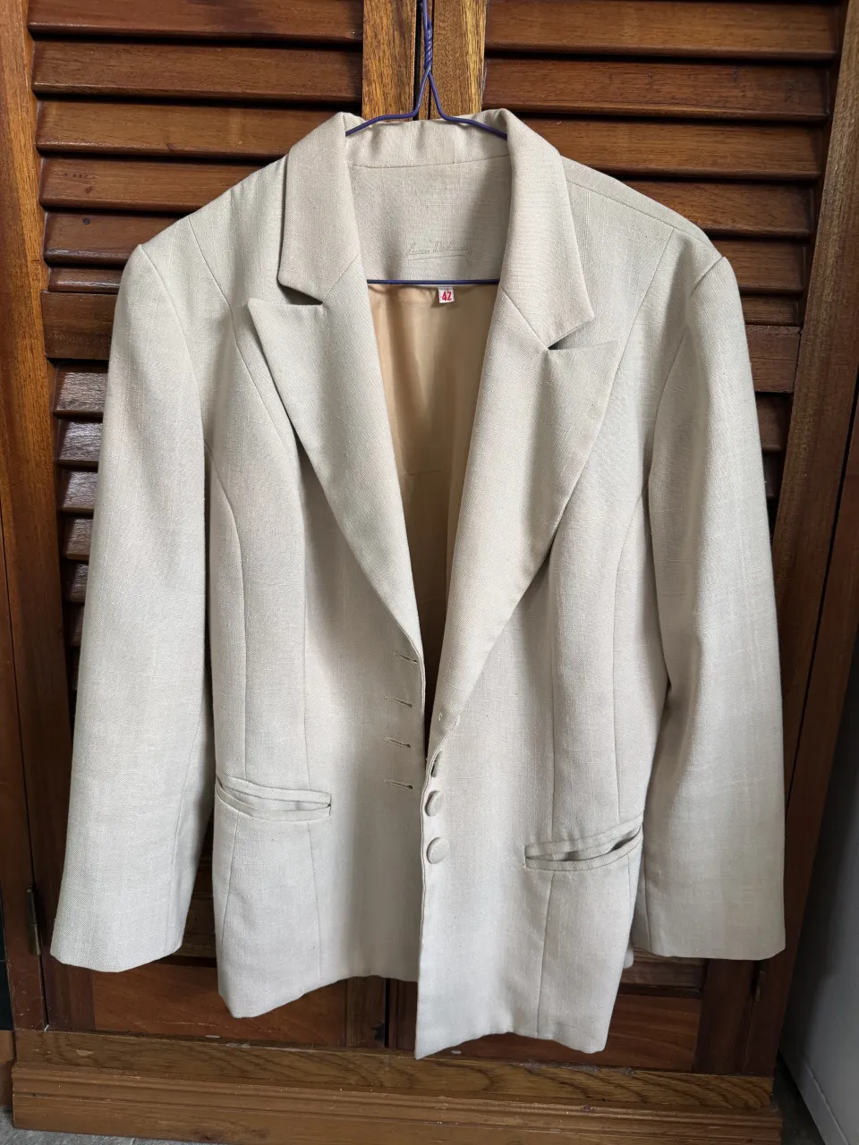 Blazer de lino color crudo, ideal para un look elegante y sofisticado. Perfecto para eventos formales o para elevar un atuendo casual de trabajo.