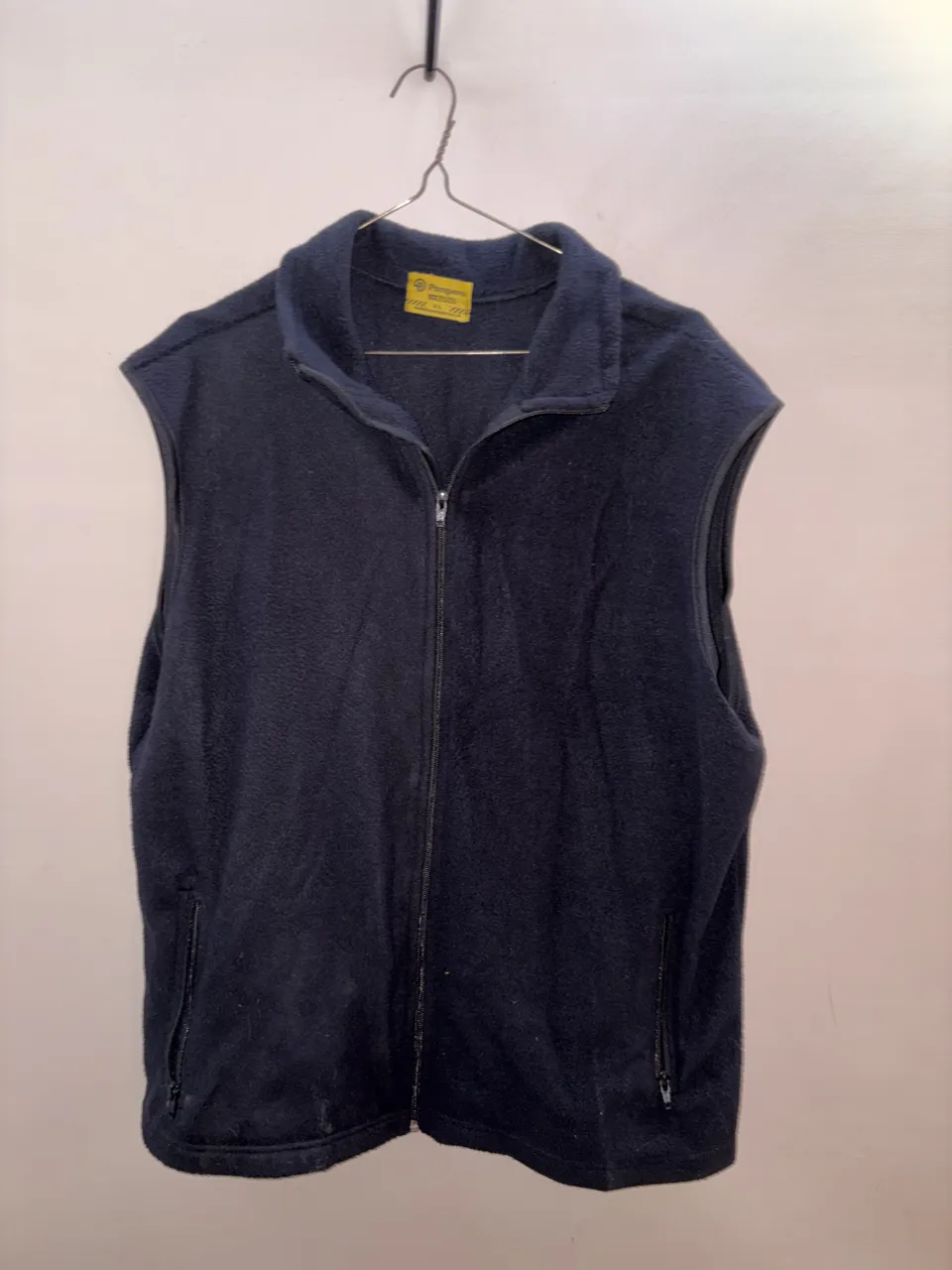 Chaleco de abrigo de micropolar. Posee cuello alto y cierre completo al frente. Dos bolsillos laterales con cierre.