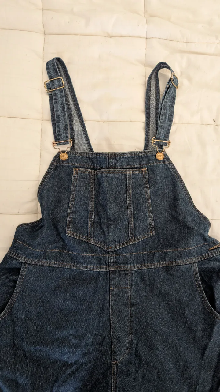 Overol de jean azul oscuro de Aire Molino. Posee bolsillos delanteros y traseros, tirantes ajustables y detalles de costura en contraste. Ideal para un look casual y cómodo.