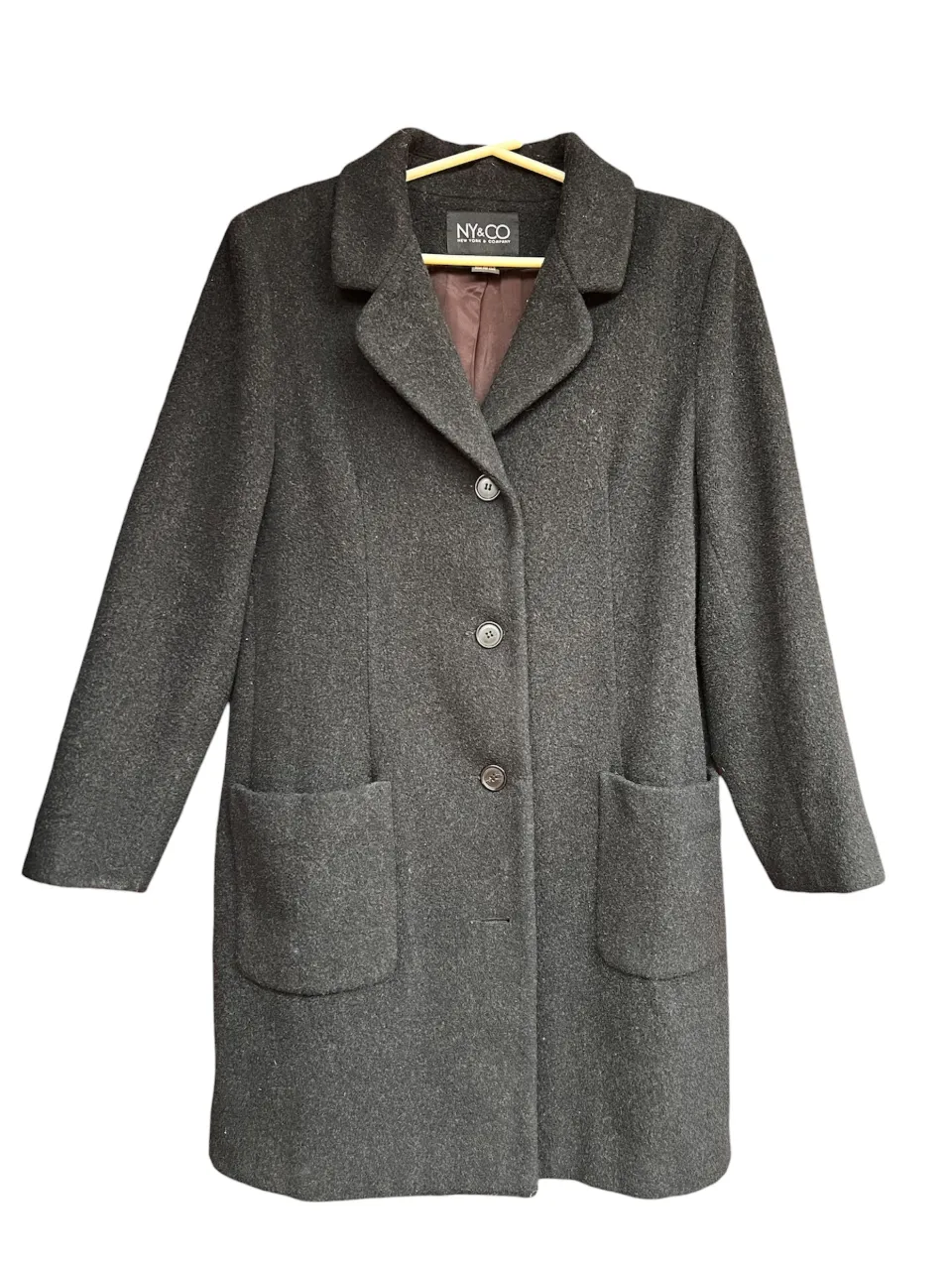 Abrigo de paño clásico en color negro. Posee cuello solapa, botones al frente y bolsillos laterales. Ideal para un look elegante y abrigado. 80% lana