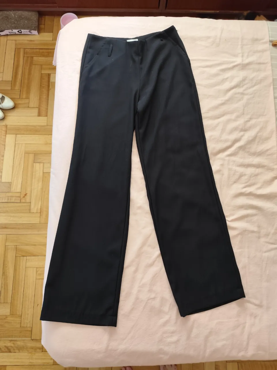 Pantalón negro de vestir, tiro alto y corte ancho. Ideal para un look elegante y moderno, perfecto para la oficina o una salida.