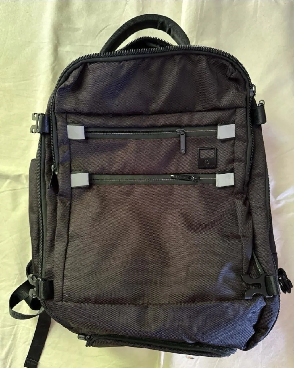 Mochila de viaje negra, ideal para notebooks de hasta 16.5". Cuenta con mecanismo antirrobo, bolsillo para guardar zapatos y puerto USB para cargar tus dispositivos. ¡Como nueva, usada solo dos veces!