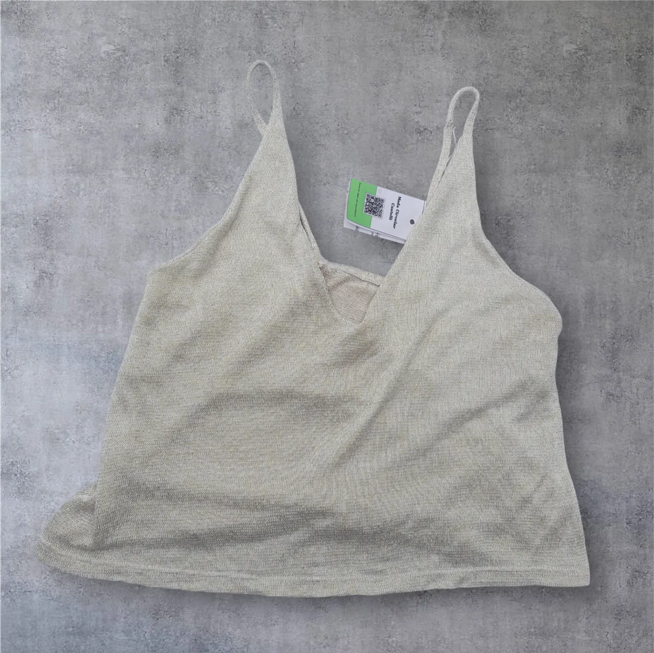 Top de hilo hueso con detalles en dorado Talle aprox L Elastizado Medidas:axila/axila 42cm. Largo total 51cm.