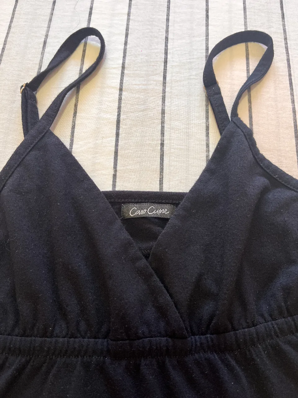 Musculosa negra con detalles de volados y puntilla en la parte inferior. Ideal para un look casual y fresco.