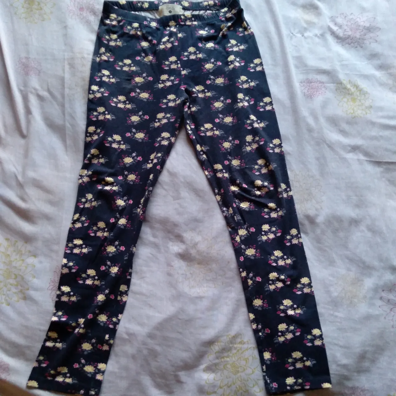 Calza estampada con flores en tonos azules y amarillos. Perfecta para un look casual y cómodo.